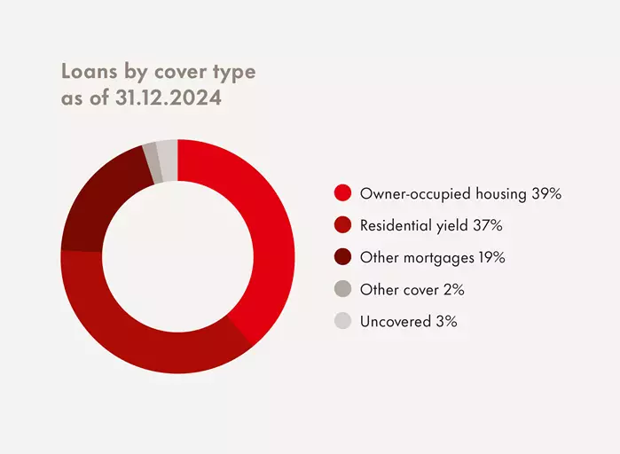 As the leading bank in the Canton of Schwyz for private and business clients, SZKB is primarily active in the mortgage business and concentrates on its market area. This includes the Canton of Schwyz and neighbouring regions in which SZKB possesses extensive market expertise. The regional allocation is based on the location of the property for mortgage insurance and the debtor’s domicile for all other types of insurance. The Schwyzer Kantonalbank Act limits the foreign assets of SZKB to a maximum of 5% of the balance sheet total. As a result of internal regulations, the financing business can account for a maximum of 0.5% of this. Mortgages are not granted to clients with covered properties outside Switzerland. Whenever a mortgage is granted, both affordability and the loan-to-value ratio are examined, including from a sustainable perspective.