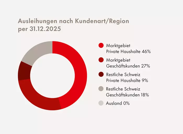 Als führende Bank im Kanton Schwyz für Privat- und Unternehmenskunden ist die SZKB schwergewichtig im Hypothekargeschäft tätig und konzentriert sich dabei auf ihr Marktgebiet. Dies umfasst den Kanton Schwyz und angrenzende Regionen, in denen die SZKB über vertiefte Marktkenntnisse verfügt. Massgebend für die regionale Zuteilung ist bei Grundpfanddeckungen das Objektdomizil, bei allen anderen Deckungen das Schuldnerdomizil. Das Gesetz über die Schwyzer Kantonalbank begrenzt die Auslandaktiven der SZKB auf max. 5% der Bilanzsumme. Davon entfallen aufgrund der internen Regelung max. 0.5% auf das Finanzierungsgeschäft. Hypotheken an Kundinnen und Kunden mit Deckungsobjekten im Ausland werden nicht gewährt. Bei jeder Vergabe einer Hypothek werden jeweils die Tragbarkeit und die Belehnung – auch in nachhaltiger Hinsicht – geprüft.