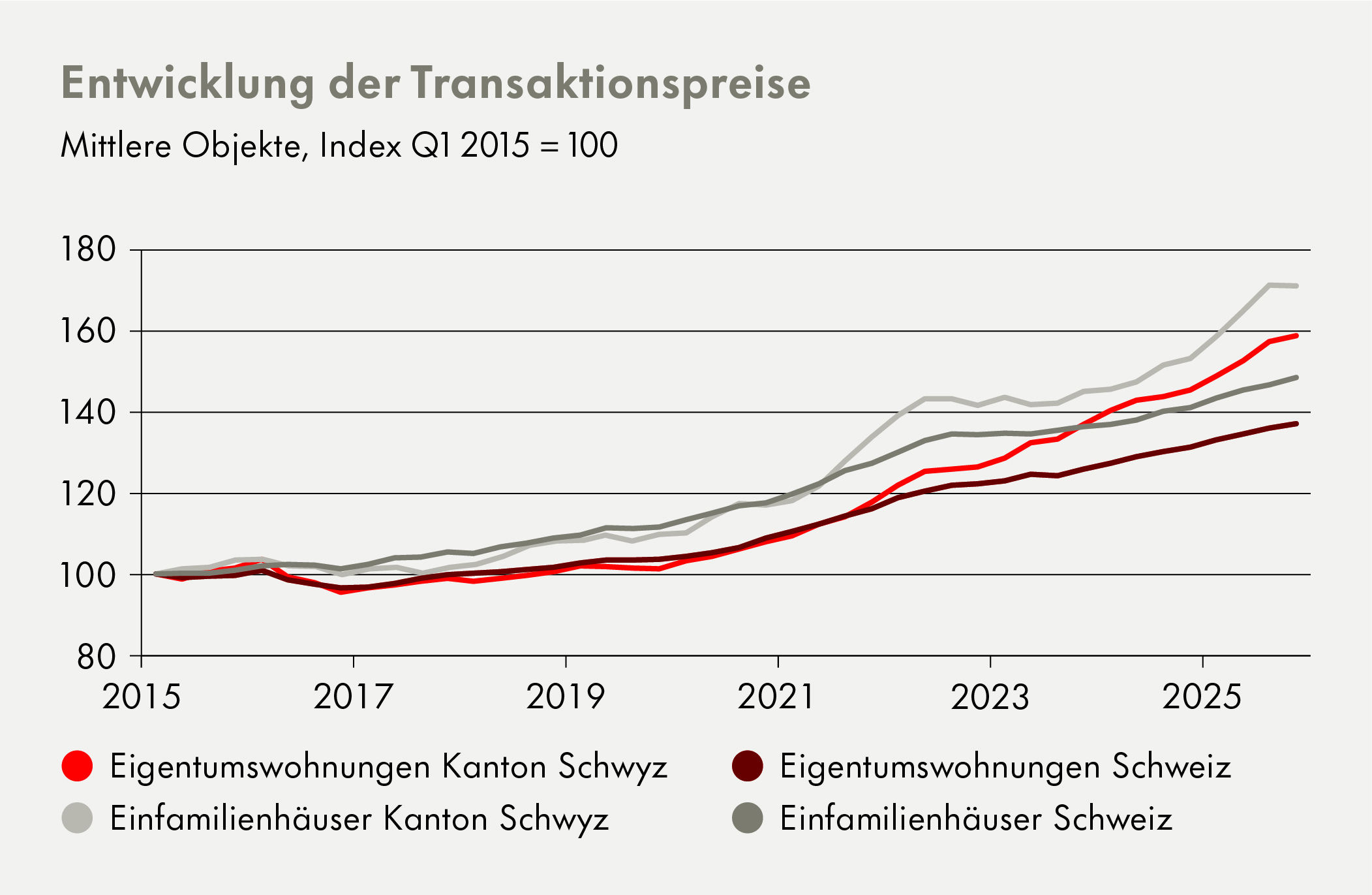 Der Kanton Schwyz wächst seit Jahren kontinuierlich. Jährlich ziehen rund 1’200 Personen mehr zu als weg. Diese Dynamik stärkt Wirtschaft und Arbeitsmarkt, verschärft jedoch die Situation auf dem Wohnungsmarkt. Der Nachfrageüberhang führte 2025 zu spürbaren Preisaufschlägen – sowohl bei Wohneigentum als auch bei Mietwohnungen.