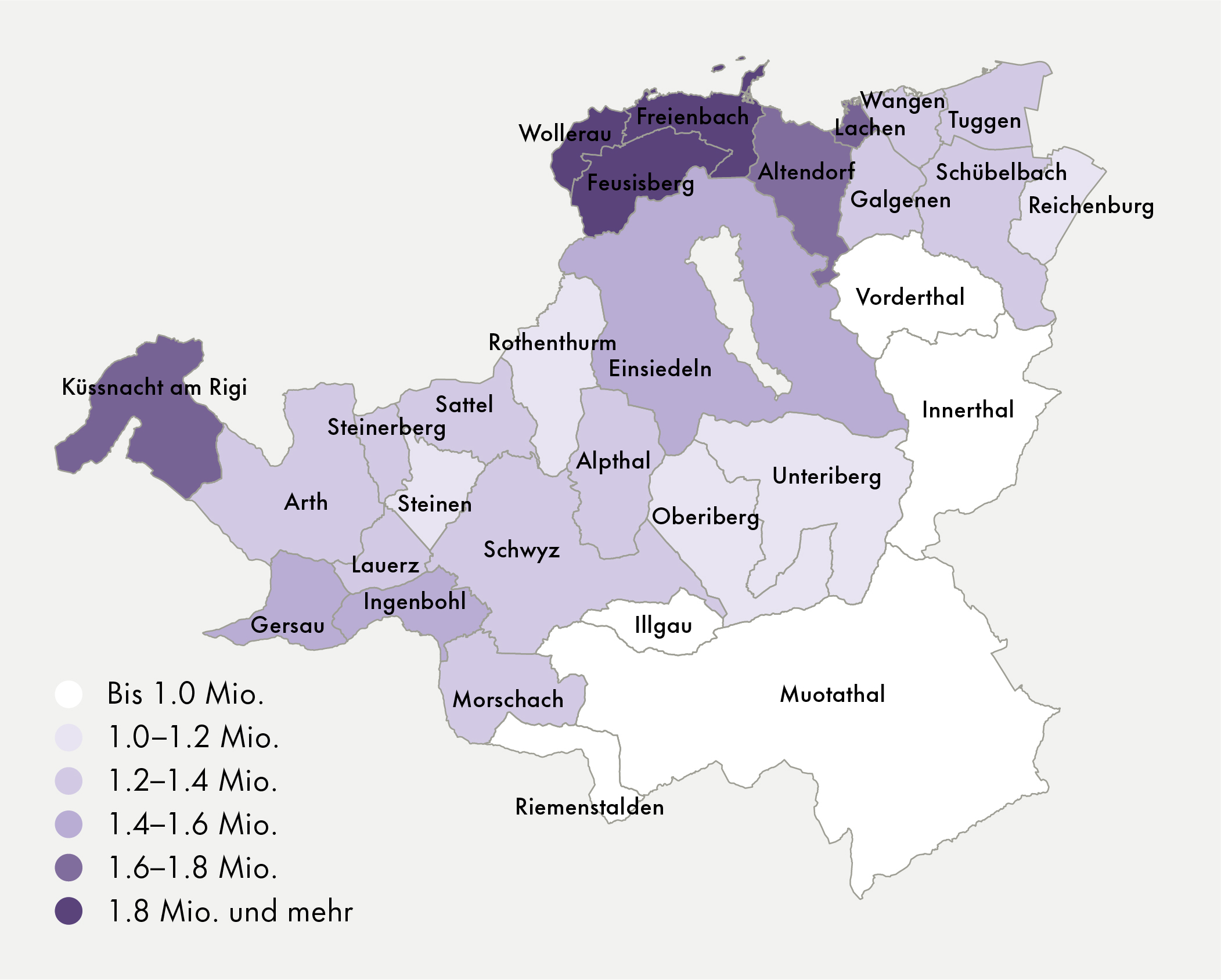 Auch die Angebotsmieten legten 2025 deutlich zu. Im Kanton Schwyz stiegen die inserierten Mieten um +4.8%, während sie schweizweit um +1.3% zunahmen. Auf eine ausgeschriebene Wohnung kommen durchschnittlich neun Suchende. Die Leerwohnungsziffer lag im Juni 2025 bei tiefen 0.52% (Schweiz: 1.00%) und zählt damit zu den niedrigsten Werten landesweit.